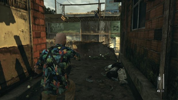 After you’re disarmed, continue on and eventually you’ll notice a window to your left with the sign labeled “Anjos Do Morro.” Approach it to engage in conversation with the same ex-cop from chapter 2.