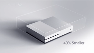 Phil Spencer kicked off Microsoft's E3 2016 conference by unveiling the Xbox One S, and it's quite the handsome devil. Shown in a sleek white finish which can be stood vertically, the new model is 40% smaller and boasts both a 2TB internal HDD as standard and an integrated power supply - finally that extra brick is a thing of the past. The Xbox One S will support HDR gaming, as well as 4K Ultra HD video for blu-ray and streaming.