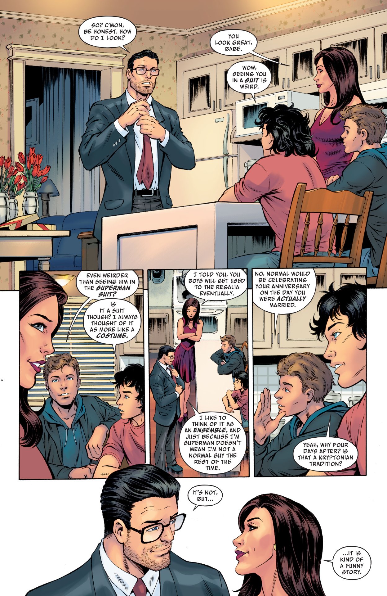 Clark Kent and Lois Lane try to celebrate their first wedding anniversary but can't quite seem to find their rhythm as heroics and reporting continue to spoil the couple's plans. Plus, learn the true origins of the evil Superman from John Henry's world!