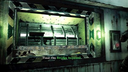 Jump on and you’ll have enough time to kill one of the gunners, which makes life much, much easier for everyone concerned. Apart from them, of course. Tell Sheva to take over the gun controls and go fetch the keycard from the first gunner. The aim here is to lure the second gunner into the open.