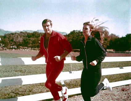 These days six million dollars would probably last you a fortnight in a US hospital having an ingrown toenail removed, but back in 1974 it would have bought you some very interesting procedures indeed. After a plane crash, mangled pilot Steve Austin (Lee Majors) was rebuilt using cutting-edge technology that cost the aforementioned wodge of cash and became the world’s first bionic man – which meant that he could do things “better, stronger, faster”. And what’s more, he could do them while all sorts of silly noises played to signify that he’d switched to “bionic” mode.