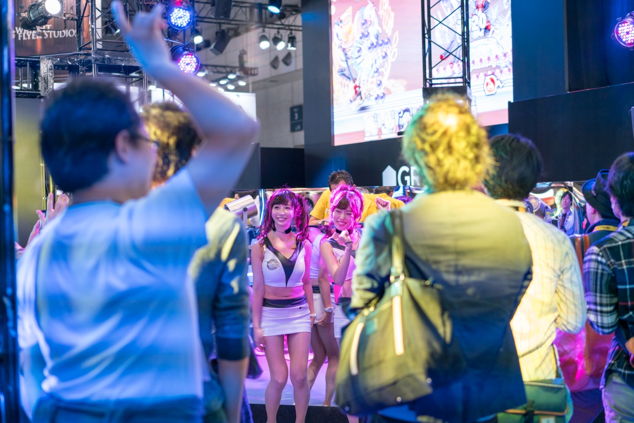 Grees booth for TGS 2015 was considerably smaller than in past years. But the mobile gaming company made up for its smaller size with live music and dancing.