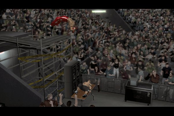 Above: Yes, it really will be possible in SmackDown! vs Raw 2007 to moonsault through a table off the top of some scaffolding