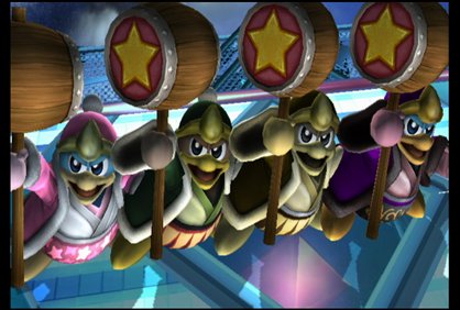 Squat yet impressively fierce, Metaknight has plagued Kirby for years, and now looks to cause trouble in the Brawlscape as well. Go bright pink Metaknight!