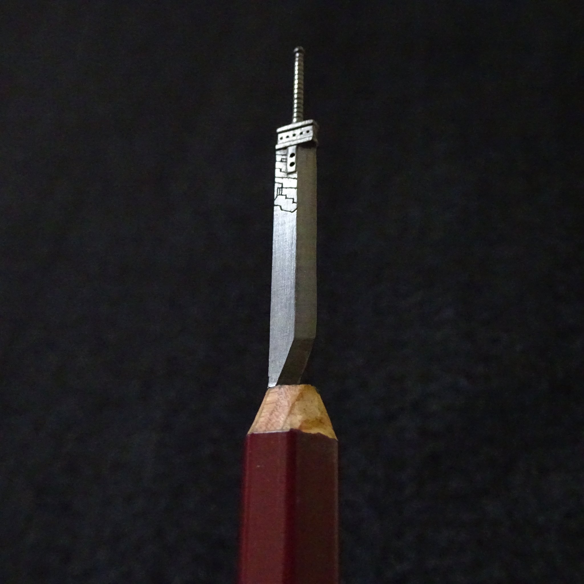 Someone carved Cloud's sword from Final Fantasy 7 out of pencil lead