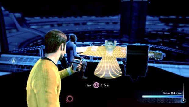 On the walkway in the center of the room (where the Gorn Observer appears) is a console that can be scanned.