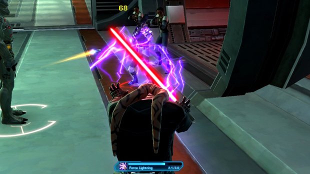 And once we were finished crafting, picking our skills, leveling up, and being yelled at by Khem, we went on our first Flashpoint. In SWTOR, the game’s instanced dungeons are called Flashpoints, and act as extremely story-based missions that take between one to two hours and require a few players in a party to complete. The one we did was called The Black Talon, and required us to board a Sith ship to deal with a captain that wasn’t following orders. After “dealing” with him (we actually let him live in order to get Light Side points, which we’ll explain at another time), we had to fight our way onto an enemy ship in order to capture a defector. It was extremely fun, besting most of the missions in other MMOs thanks to the story.