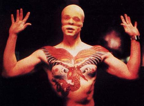 Inspired by William Blake’s famous painting ‘The Great Red Dragon And The Woman Clothed With The Sun’, it’s symbolic of Dollarhyde’s ‘Becoming’, in which he arranges his victims in a tableaux to simulate the love and acceptance he has never known, but Noonan recalls the director coming up to him one day and saying, “I think the tattoo trivialises the struggle and we’re not gonna use it.” Cutting the shots of a tattooed Noonan, Mann instead alluded to the Red Dragon – notably with the puddle of blood that forms around Dollarhyde when Graham shoots him dead at the end.