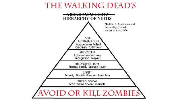 In some ways, "The Next World" was The Walking Dead's attempt to redefine Maslow's Hierarchy of Needs, a psychological model used to understand people's basic wants and aspirations. The idea is that you start at the bottom of the pyramid, and work your way up. It's a neat framework for viewing the show's protagonists, and I've sketched it to reflect the show's parameters below...