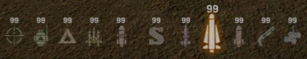 Fire Missile (16/orange): Very similar to a standard homing missile, but with less range and tracking. In return you get a higher damage output.