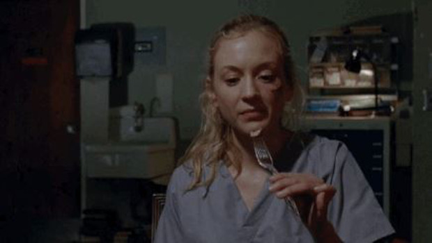 Also good is director Michael Satrazemis. He uses the change of location as an excuse to make an episode that’s visually very different to the show’s standard format. The clean lines of the hospital stand in stark contrast to the show’s typical grungy grey-green tones. The outdoor scenes, with the ruins of Atlanta framed in the background are very evocative and Beth’s foiled escape from the gloom of the building is marked by an over-saturated sky. Hardly ground-breaking stuff, but refreshing in this show.