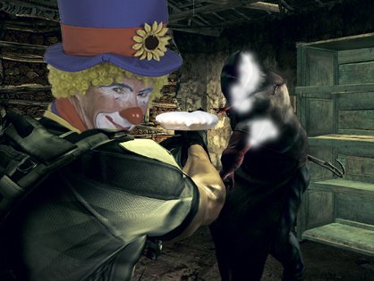 What I propose is DLC that adds Skippy the Clown, a magical, pansexual, non-threatening mischief-maker! See, Skippy won’t have all the weapons that Chris and Sheva have. No miniguns, rifles, or shotguns here. Instead, all new weapons like confetti, pies, whoopee cushions and seltzer spray are used to disorient the zombies… or whatever the hell they are.