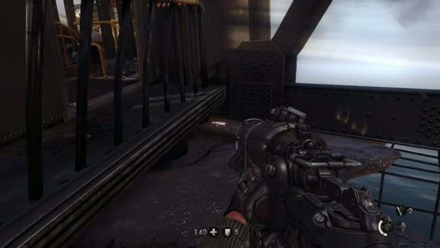 4:1: After the previous code piece, enter the next train car by walking up the girder and once inside, the code will be on the ground to the left by the large opening in the wall of the train car.